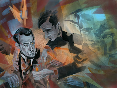 Still, LOOK FOR DETAILS in NORTH BY NORTHWEST. The use of hands--human hands--and how they articulate. Grant and Eva Marie-Saint use them to great effect. Their first meeting, on the train, has them in the throws of passion: the cross cutting keeps the consistency of splayed fingers in hair, conveying a certain charm in the moment. Later, when they meet again, after Grant has been betrayed, Marie-Saint keeps her fingers splayed, but Grant, he holds his hands away from her, unable to touch his Judas. THIS is something that doesn’t show up in a script. THIS is NORTH BY NORTHWEST.